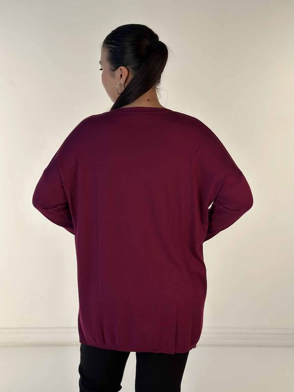 Toptan Kadın Triko Kazak Uzun Kollu Taş İşlemeli Cep Detaylı Bisiklet Yaka Eflatun - 30624 | KAZEE