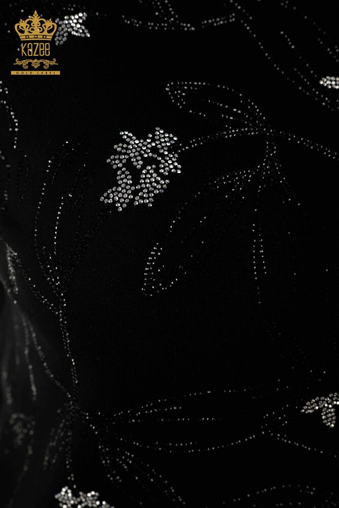 Großhandel Damen Strickwaren Pullover Blattmuster Kristallstein bestickt schwarz - 30240 | KAZEE