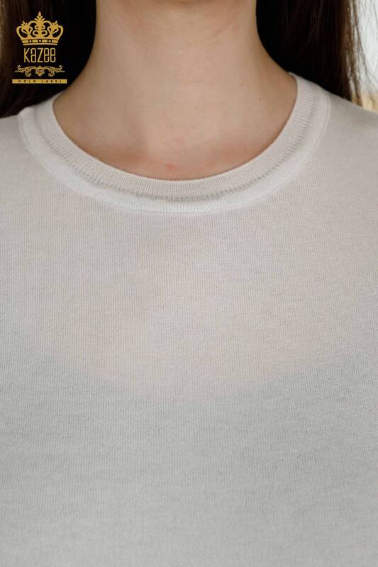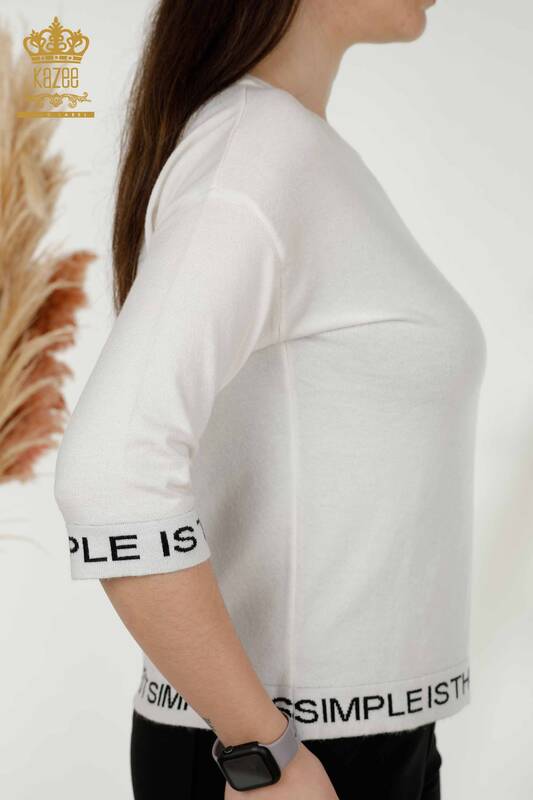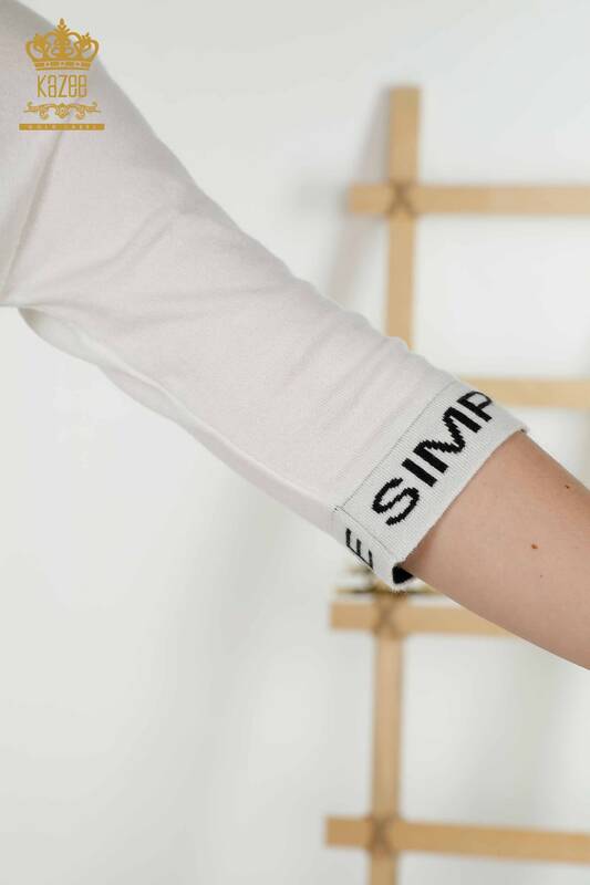 Toptan Kadın Triko Kazak Yazı Detaylı Ekru Siyah - 30359 | KAZEE