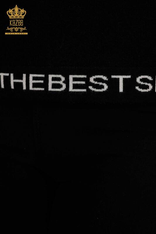 Venta al por mayor Suéter de punto para mujer Carta detallada Negro Crudo - 30359 | kazee