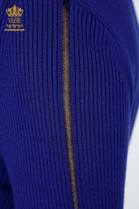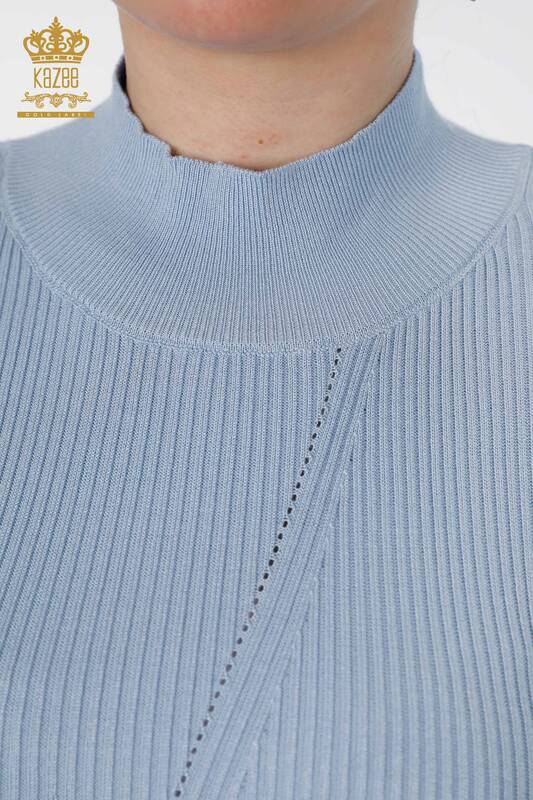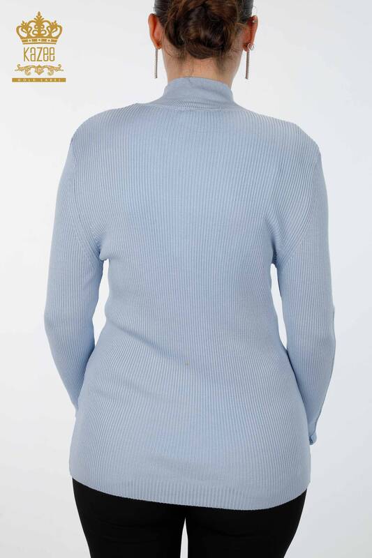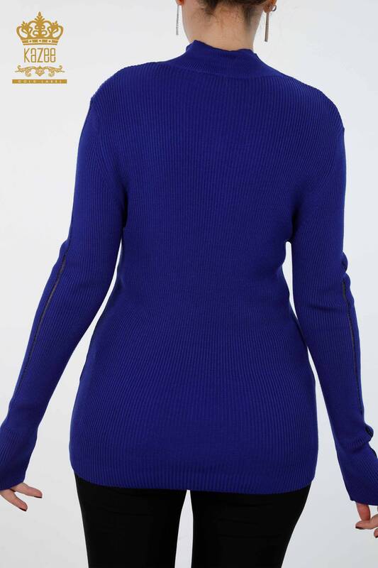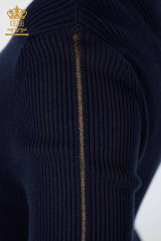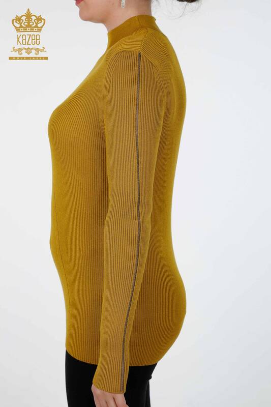 Großhandel Damen-Strickwaren mit Stehkragen und detailliertem, mit Steinen besticktem Ärmel - 16248 | KAZEE