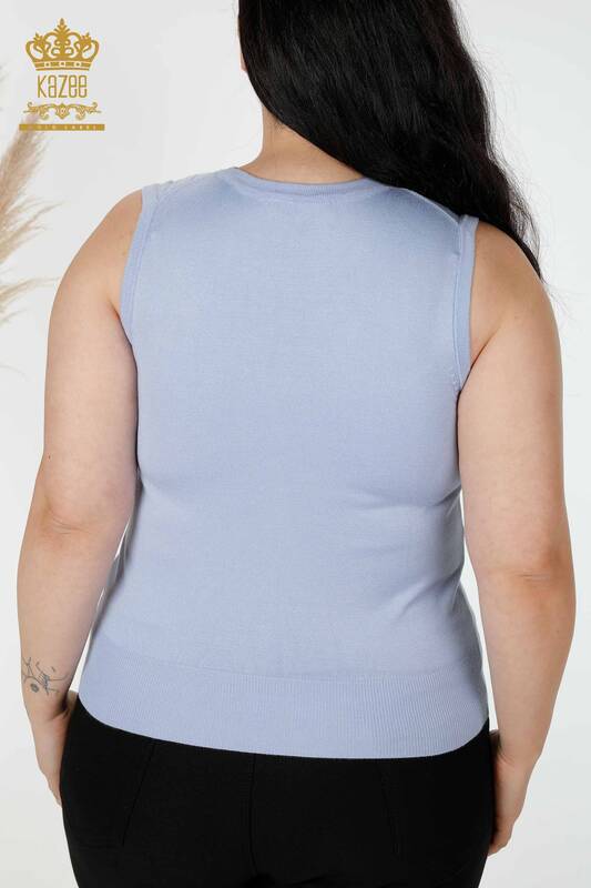 Toptan Kadın Triko Melek Kanat Desenli Kolsuz Taş İşlemeli Mavi - 16921 | KAZEE