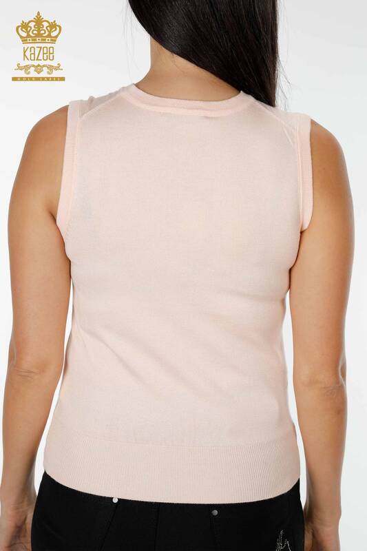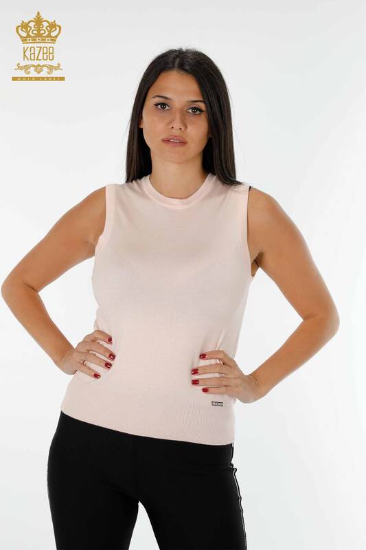 Toptan Kadın Triko Sıfır Kol Pudra - 16922 | KAZEE