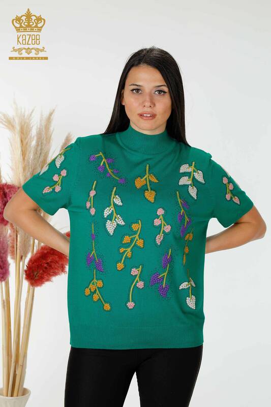 Toptan Kadın Triko Amerikan Model Taş İşlemeli Yeşil - 16753 | KAZEE
