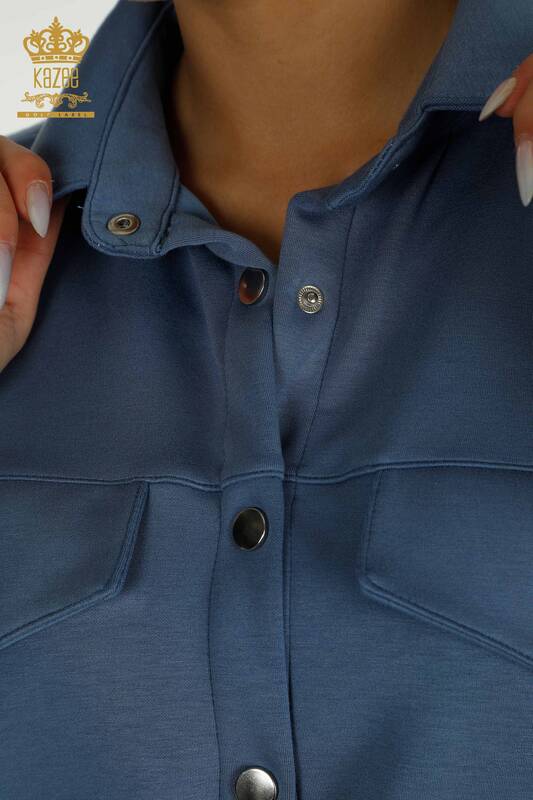 Toptan Kadın Üçlü Eşofman Takımı Düğme Detaylı İndigo - 17633 | KAZEE