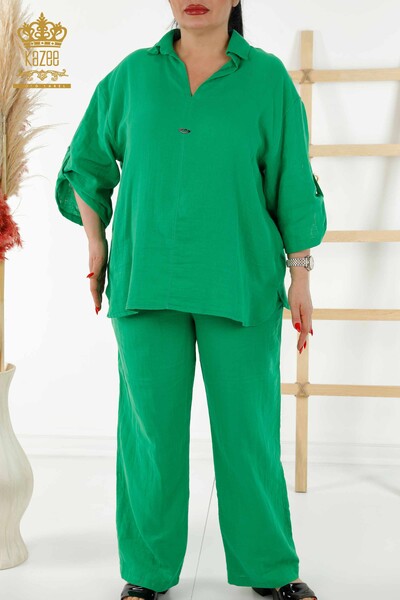 تُصنع منتجات مجموعة بيع بالجملة بدلة صيفية نسائية من Kazee بعناية في تركيا، الدولة التي تشتهر عالميًا بتميزها في صناعة النسيج.
