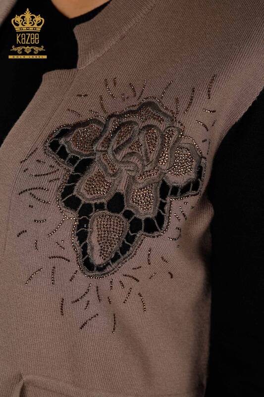 Toptan Kadın Yelek Taş İşlemeli Vizon - 16830 | KAZEE