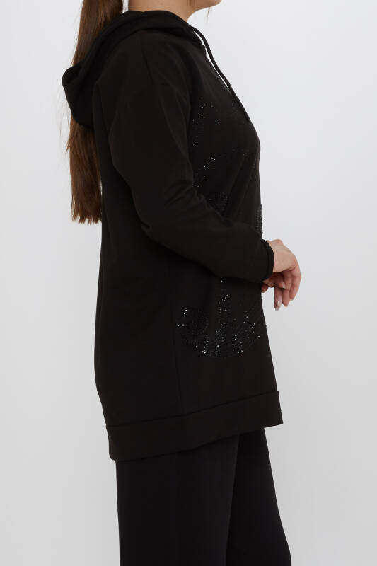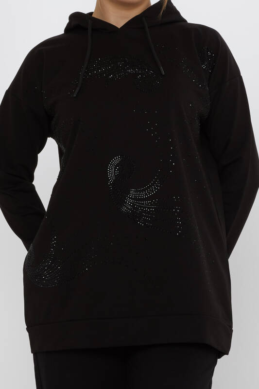 Tracksuit Set Hooded Detailed Stone Embroidered Black - 17896 | KAZEE (Set of 3 M-L-XL)