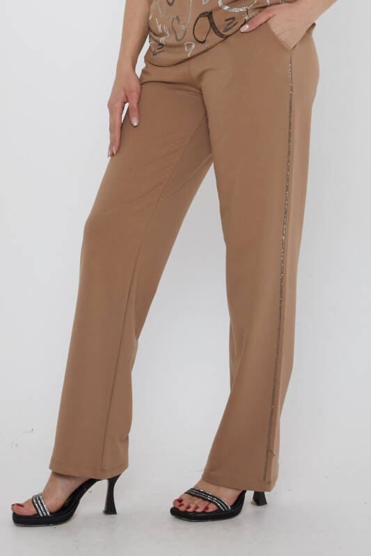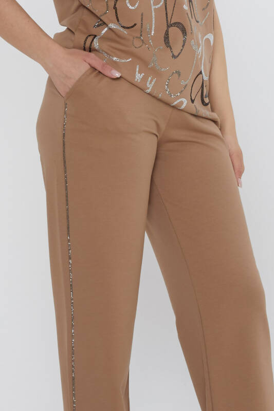 Tracksuit Set with Letter Stone Embellishment, Short Sleeves, Mink - 17906 | KAZEE (3-Piece Set M-L-XL)