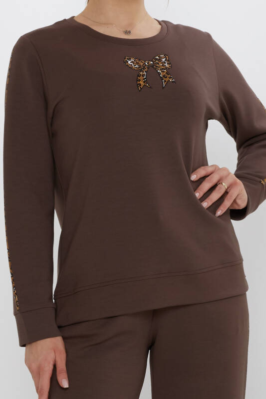 Tracksuit Set Strip Stone Embroidered Ribbon Detail Brown - 17902 | KAZEE (Set of 3 L-XL-2XL)