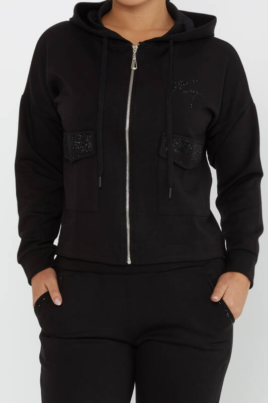 Trainingsanzug-Set mit Kapuze und Tasche, Stein bestickt, Schwarz – 17426 | KAZEE (4er-Set S-M-L-XL)
