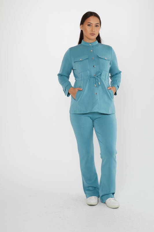 Trainingsanzug-Set mit Knopfdetail und Steinstickerei in Blau – 17622 | KAZEE (4er-Set S-M-L-XL)