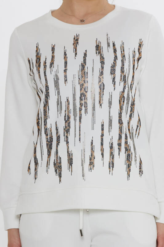 Trainingsanzug-Set mit Taschendetail, Leoparden-Stein-Stickerei, Ecru – 17886 | KAZEE (3er-Set M-L-XL)