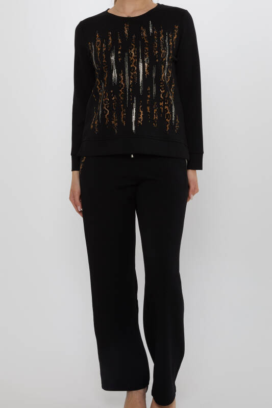 Trainingsanzug-Set mit Taschendetail, Leopardenstein-Stickerei, Schwarz – 17886 | KAZEE (3er-Set M-L-XL)