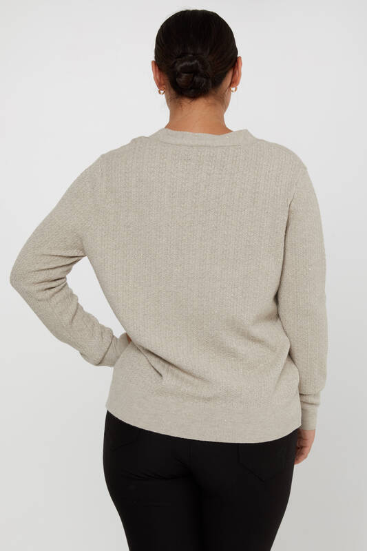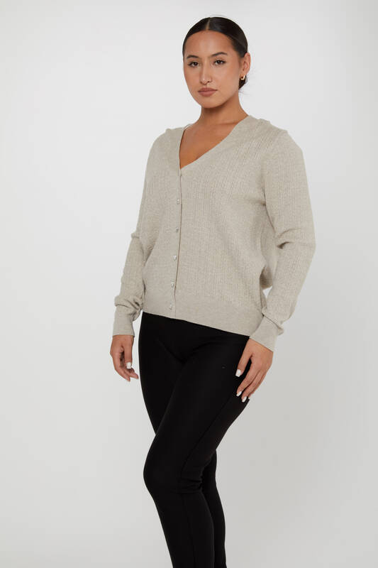 Cardigan en Maille avec Boutons Coeur et Pierres Beige - 31052 | KAZEE (Lot de 4 L-XL-2XL-3XL)