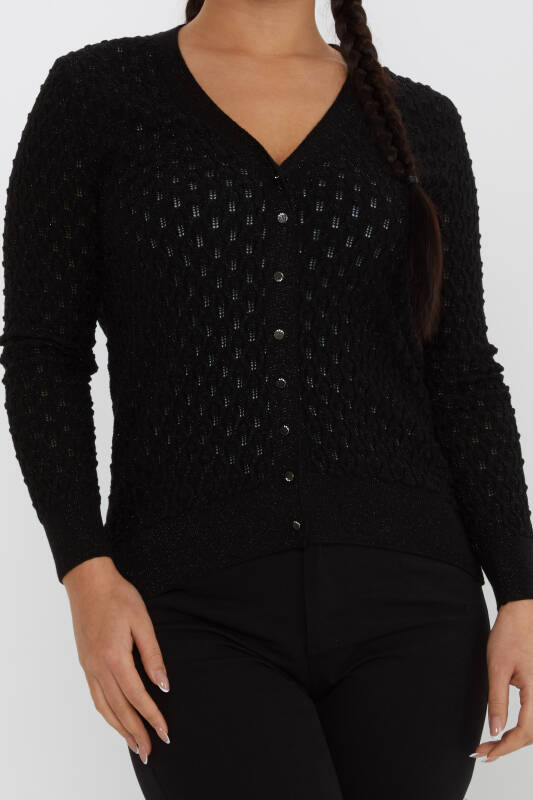 Cardigan en tricot boutonné à motifs détaillés noir - 30036 | KAZEE (Lot de 4 M-L-XL-2XL)