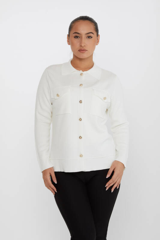 Cardigan En Maille Poche Détaillée Boutonnée Ecru - 30693 | KAZEE (Lot de 4 M-L-XL-2XL)