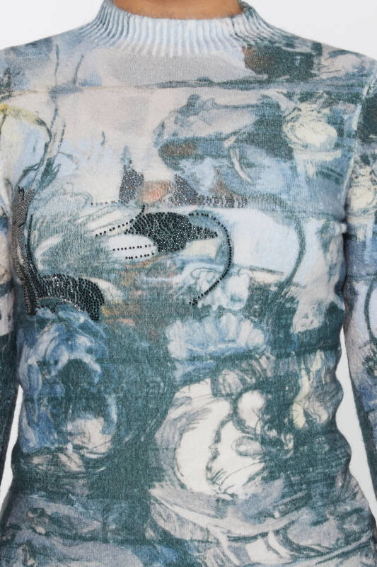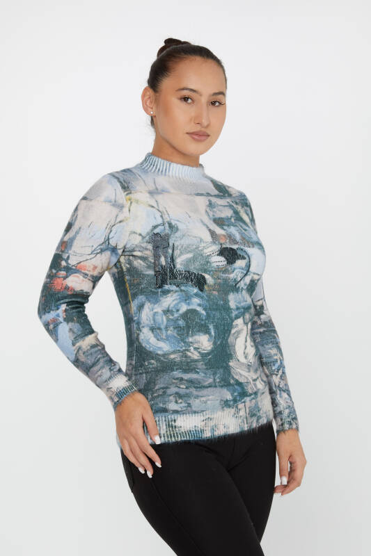 Tricotaj Angora Mânecă lungă Stone Brodate Digital - 50022 | KAZEE (Set de 2 S-M)