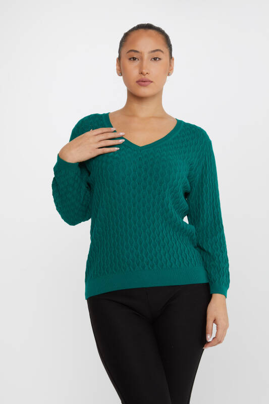 Tricotaj Pulover Auto-Model Decolteu în V Verde - 31247 | KAZEE (Set de 3 M-L-XL)