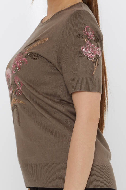Tricotaj Pulover Floare Brodat Piatra Brodat Mink - 31725 | KAZEE (Set de 3 L-XL-2XL)