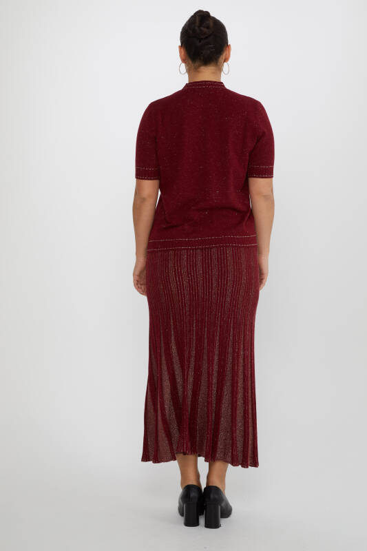Tricoturi Fusta Culoare Tranzitional Glitter Detaliat Roșu Claret - 31530 | KAZEE (Set de 3 M-L-XL)
