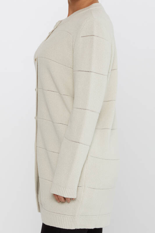 Tricotaj Cardigan Buton Detaliat Perforat Ecru - 30643 | KAZEE (Set de 3 M-L-XL)