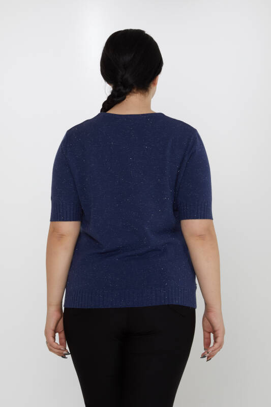Tricoturi Pulover Detaliu cu sclipici Maneca scurta Bleumarin - 31714 | KAZEE (Set de 3 XL-2XL-3XL)