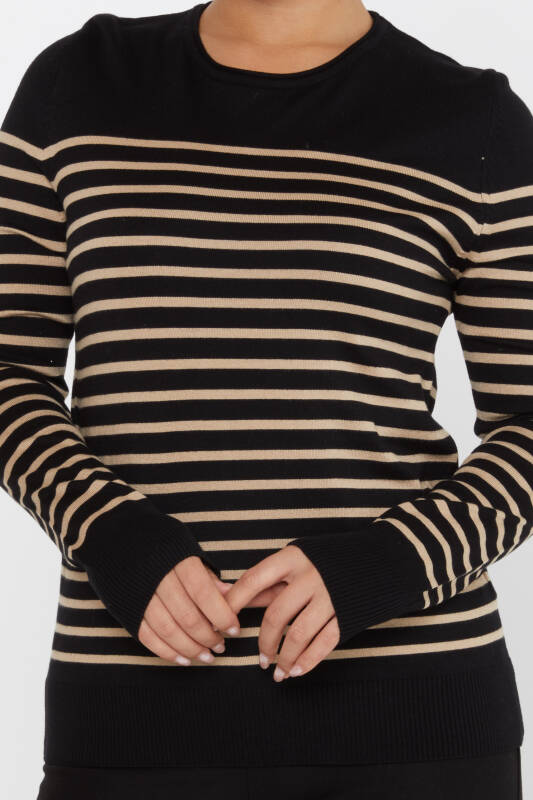 Tricotaj Pulover cu dungi în două tonuri mânecă lungă negru-bej - 30898 | KAZEE (Set de 4 M-L-XL-2XL)