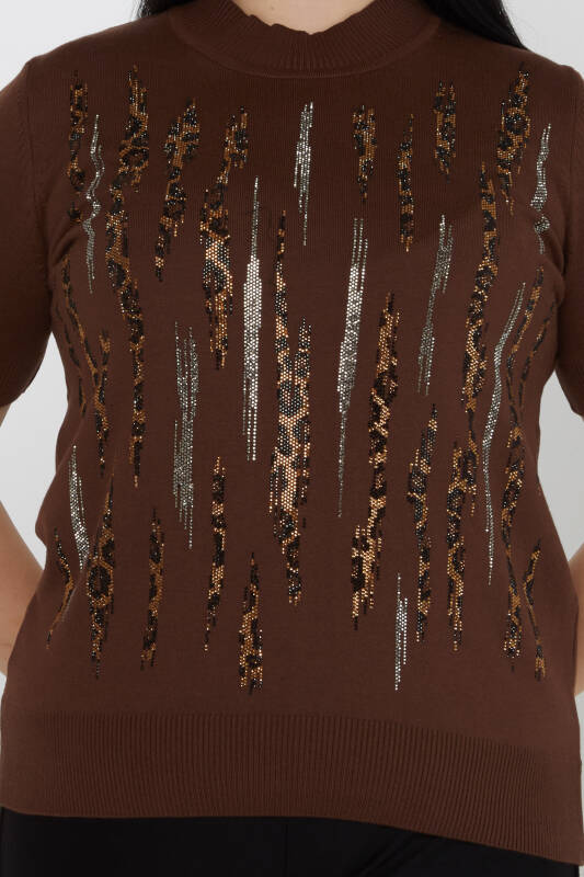 Tricoturi Pulover Leopard Stone Brodat Guler Stand Maro - 31565 | KAZEE (Set de 3 M-L-XL)