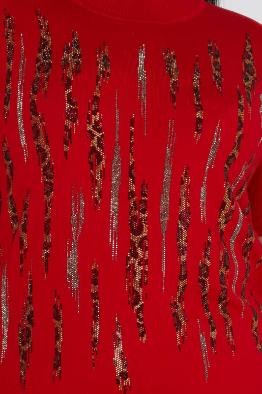 Tricoturi Pulover Leopard Stone Brodat Guler Stand Roșu - 31565 | KAZEE (Set de 3 M-L-XL)
