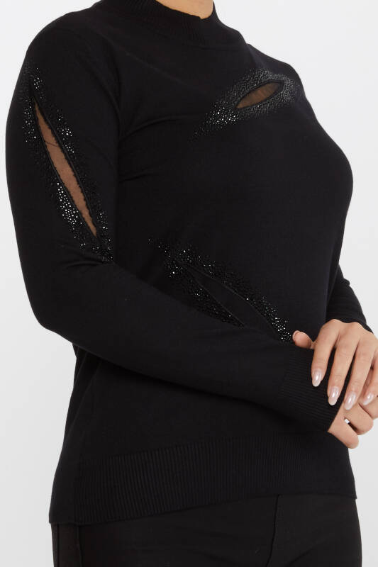 Tricotaj Pulover Stone Brodat Tulle Negru - 30090 | KAZEE (Set de 4 M-L-XL-2XL)