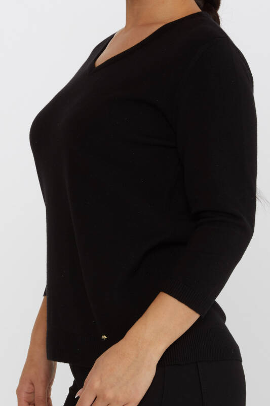 Tricotaj Pulover cu Detaliu Glitterat Decolteu în V Negru - 31515 | KAZEE (Set de 3 M-L-XL)