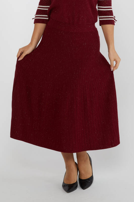 تنورة محبوكة بخصر مطاطي وتفاصيل لامعة باللون الأحمر الداكن - 31391 | كازي (مجموعة من 3 مقاسات M-L-XL)