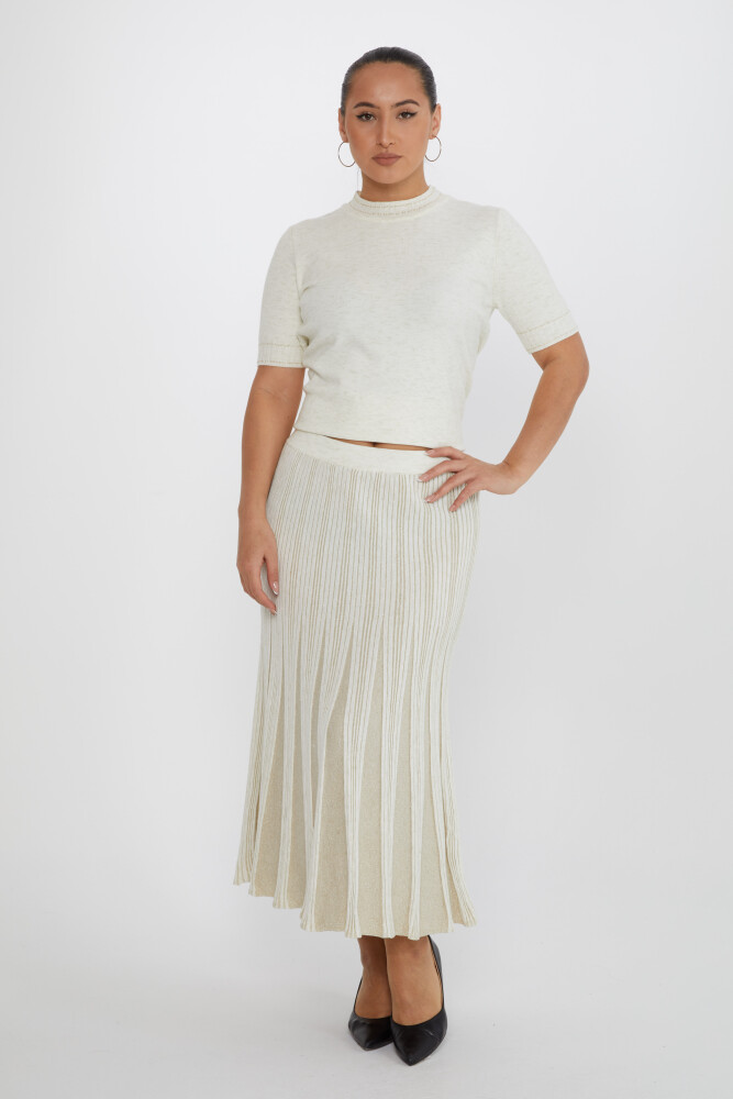 Jupe en tricot Couleur Transitionnelle Paillettes Détaillées Écru - 31530 | KAZEE (Lot de 3 M-L-XL)