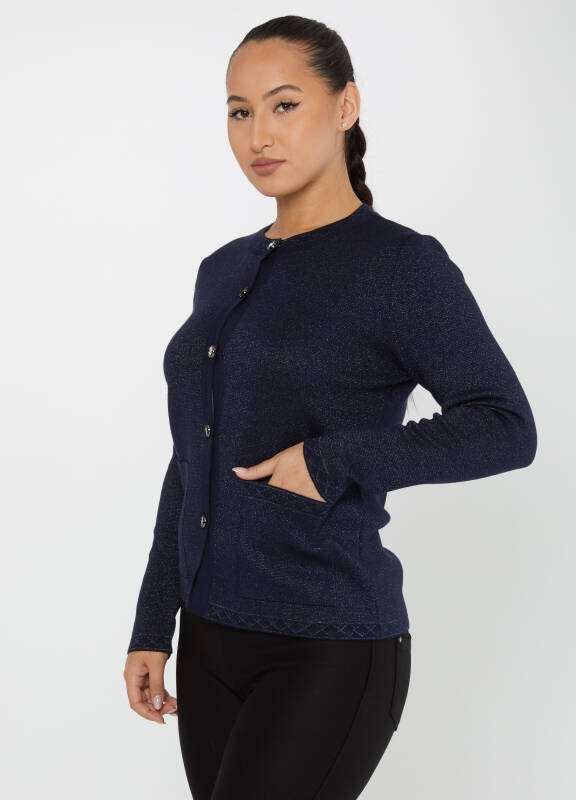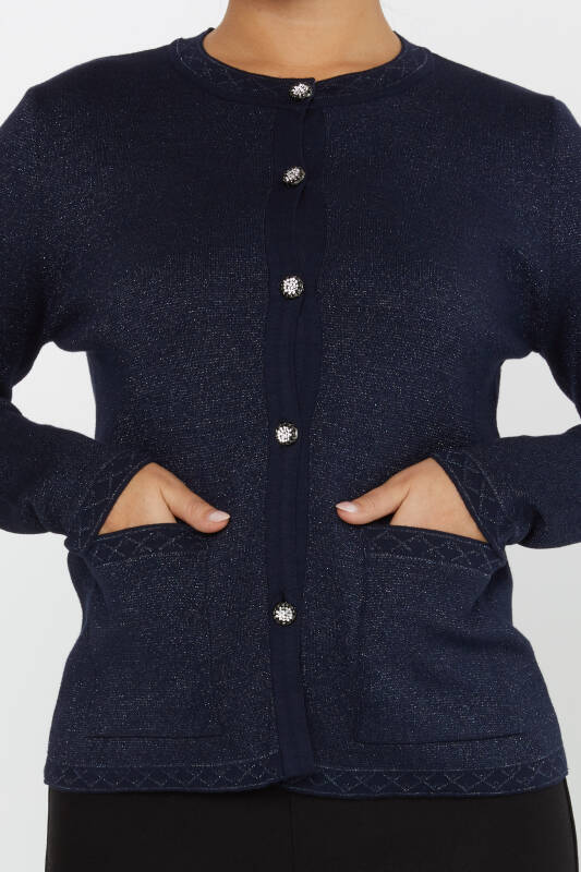 Triko Hırka Taşlı Düğme Detaylı Cepli Lacivert - 30730 | KAZEE (4'lü Set M-L-XL-2XL)