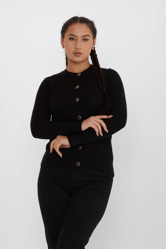 Tricotaj Cardigan Maneca lunga Buton Detaliat Negru - 31070 | KAZEE (Set de 4 M-L-XL-2XL)