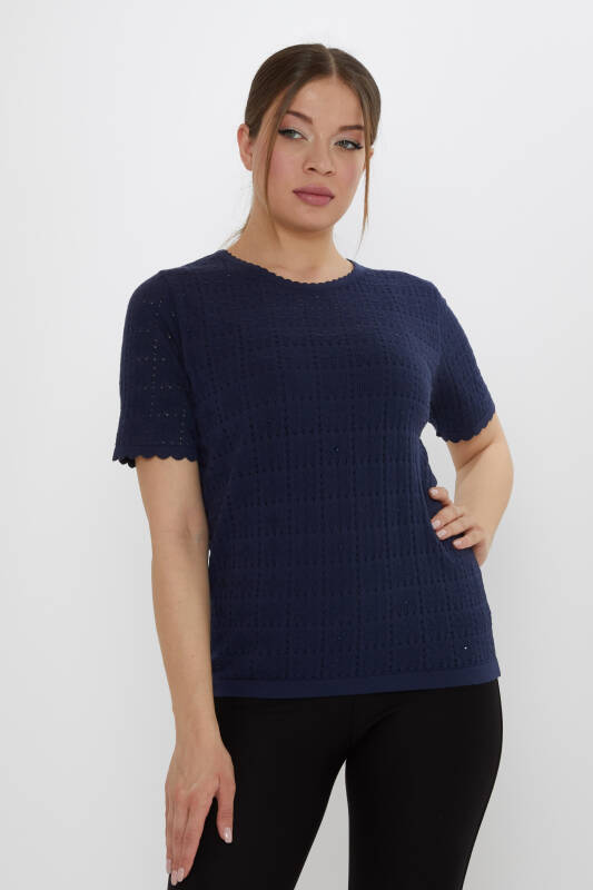 Triko Kazak Ajurlu Taşlı Lacivert - 31822 | KAZEE (3'lü Set L-XL-2XL)