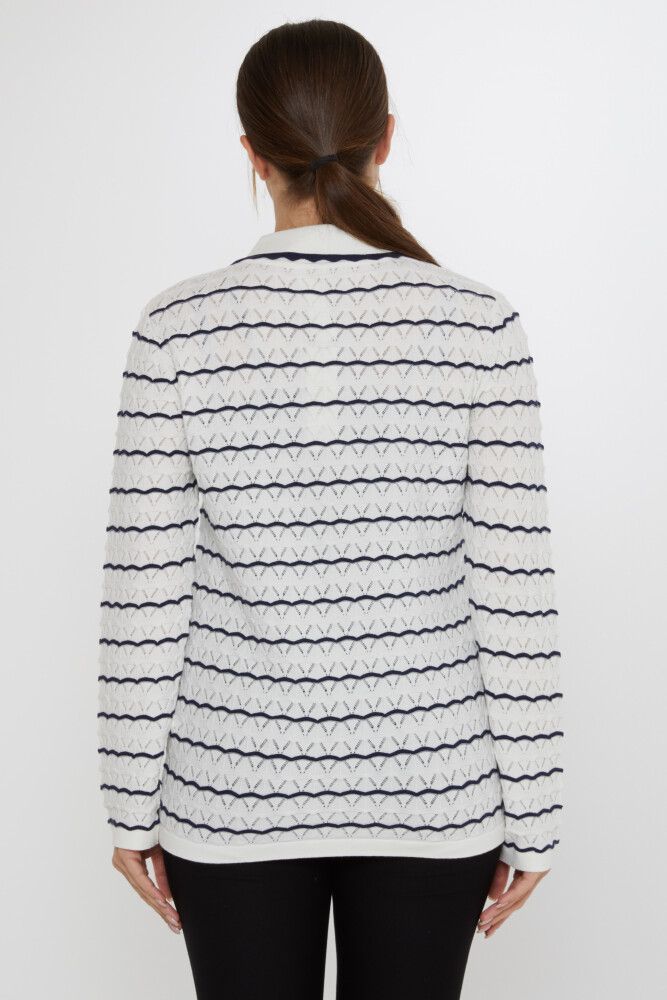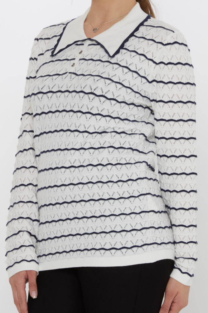 Triko Kazak Çapa Broşlu Önlük Yaka Ekru-Lacivert - 31777 | KAZEE (3'lü Set M-L-XL)