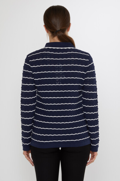 Triko Kazak Çapa Broşlu Lacivert-Ekru - 31777 | KAZEE (3'lü Set M-L-XL)
