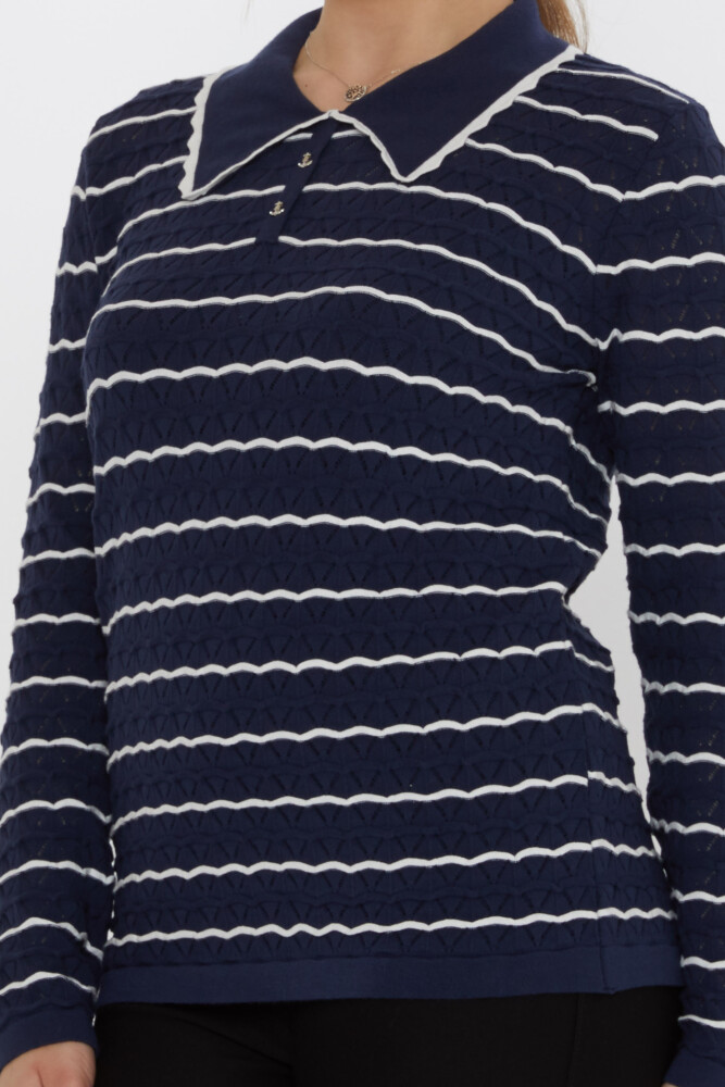 Triko Kazak Çapa Broşlu Önlük Yaka Lacivert-Ekru - 31777 | KAZEE (3'lü Set M-L-XL)