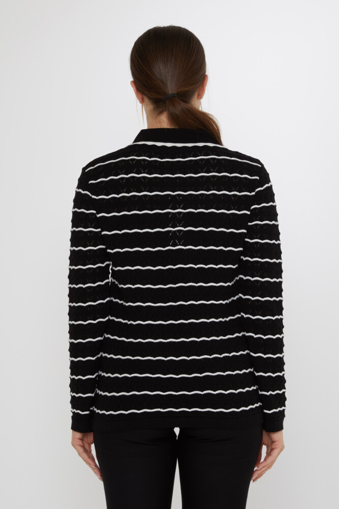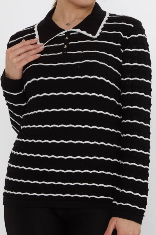 Triko Kazak Çapa Broşlu Önlük Yaka Siyah-Ekru - 31777 | KAZEE (3'lü Set M-L-XL)