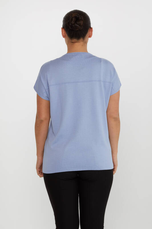 ژاکت بافتنی جیبی سنگ دوزی با جزئیات آبی - 30765 | KAZEE (مجموعه 4 عددی L-XL-2XL-3XL)
