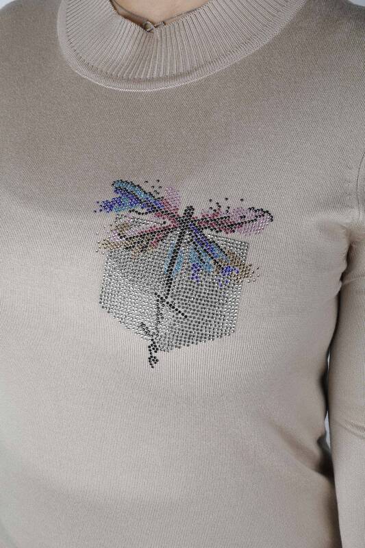 Triko Kazak Cep Taş Desenli Bej - 30473 | KAZEE (4'lü Set L-XL-2XL-3XL)