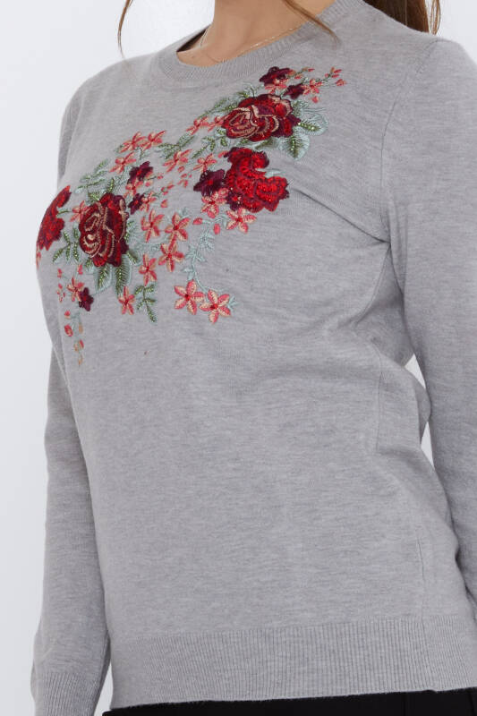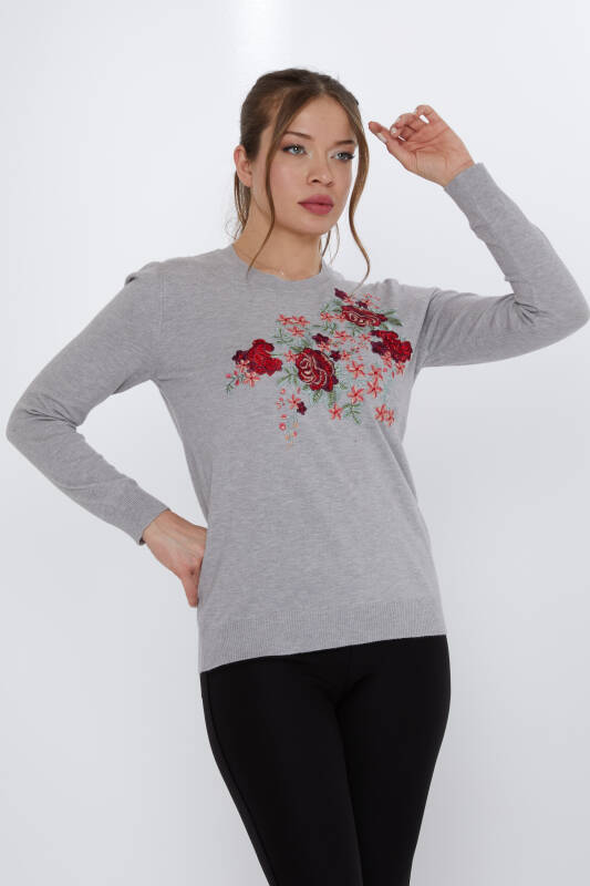 Трикотажный свитер с вышитыми розами, серый цвет с вышитыми камнями - 31377 | KAZEE (Набор из 3 шт. L-XL-2XL)