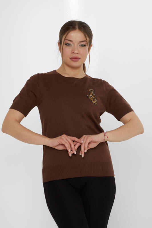 Triko Kazak Kaplan Taş İşlemeli Kahve - 31596 | KAZEE (3'lü Set M-L-XL)