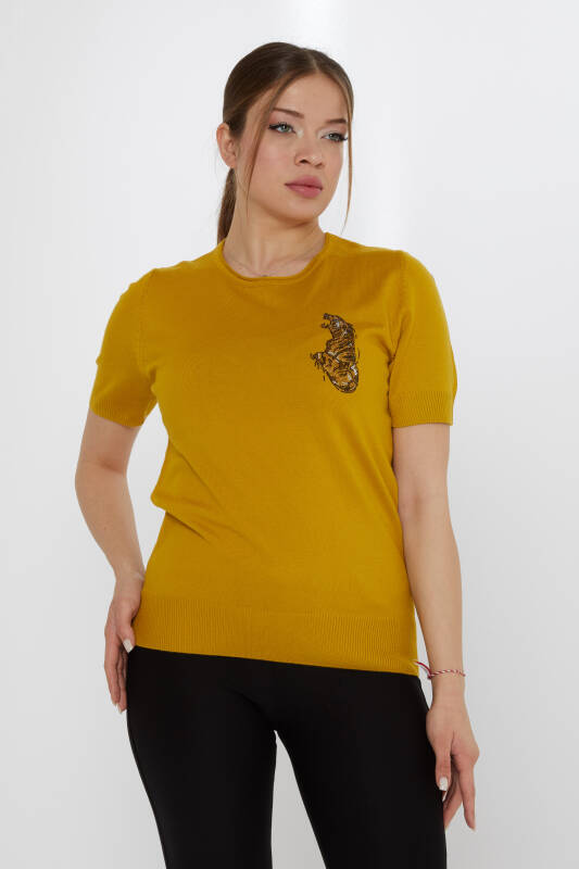 Triko Kazak Kaplan Taş İşlemeli Safran - 31596 | KAZEE (3'lü Set M-L-XL)