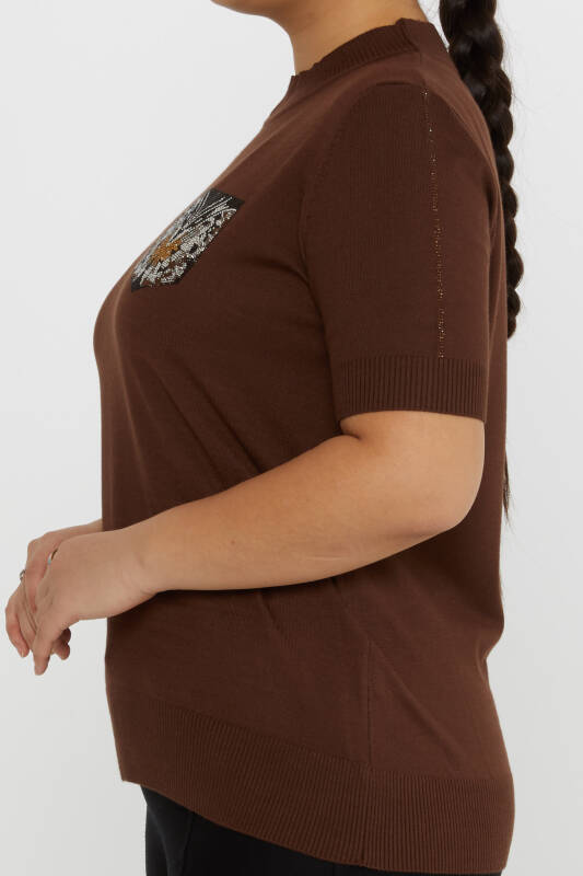 Jersey Punto Mariposa Bordado Piedra Manga Corta Marrón - 31552 | KAZEE (Juego de 3 M-L-XL)