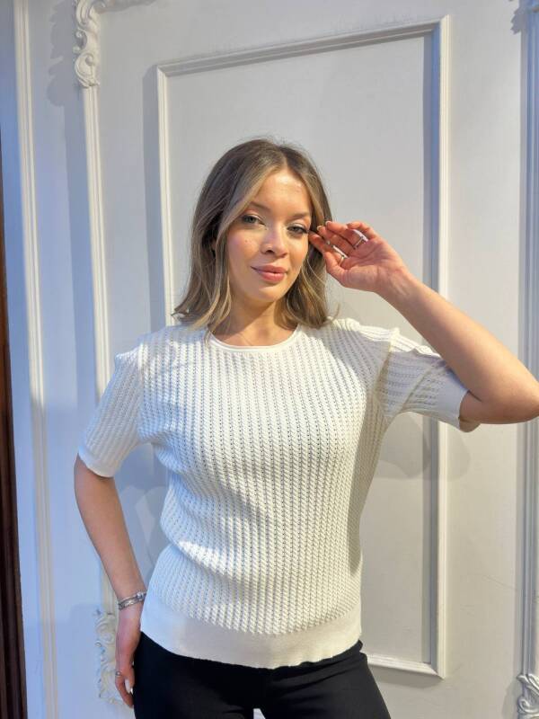 Triko Kazak Kısa Kol Detaylı Ekru - 32062 | KAZEE (3'lü Set M-L-XL)