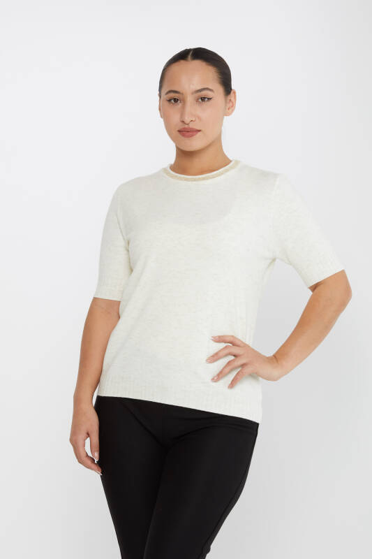 Triko Kazak Kısa Kollu Sim Detaylı Ekru - 31611 | KAZEE (3'lü Set S-M-L)