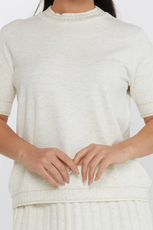 Suéter de punto de manga corta con purpurina en color crudo - 31626 | KAZEE (Juego de 3 tallas M-L-XL)